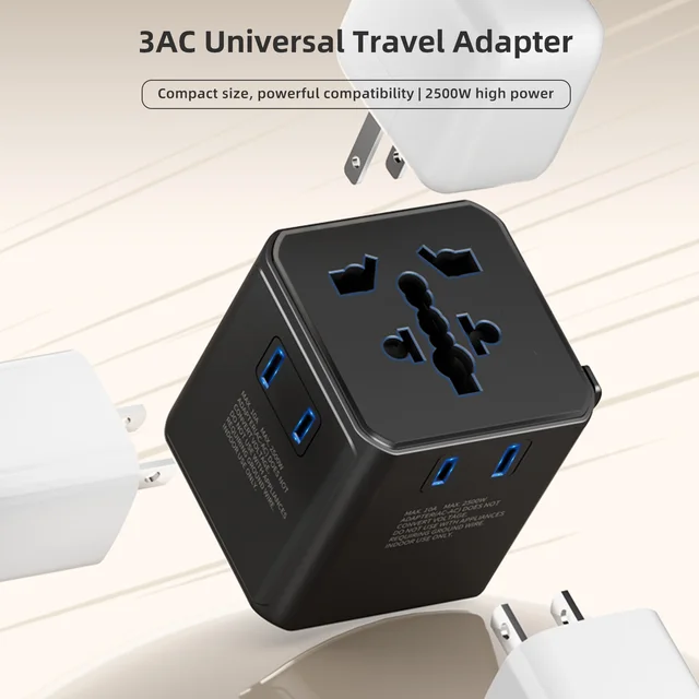 Wontravel 2500W USB Universal Travel Adapter International All in One Worldwide Travel with 3AC Sockets